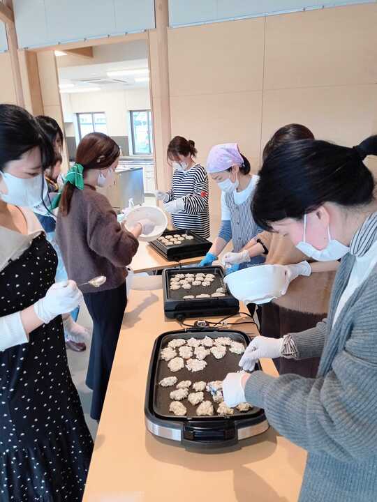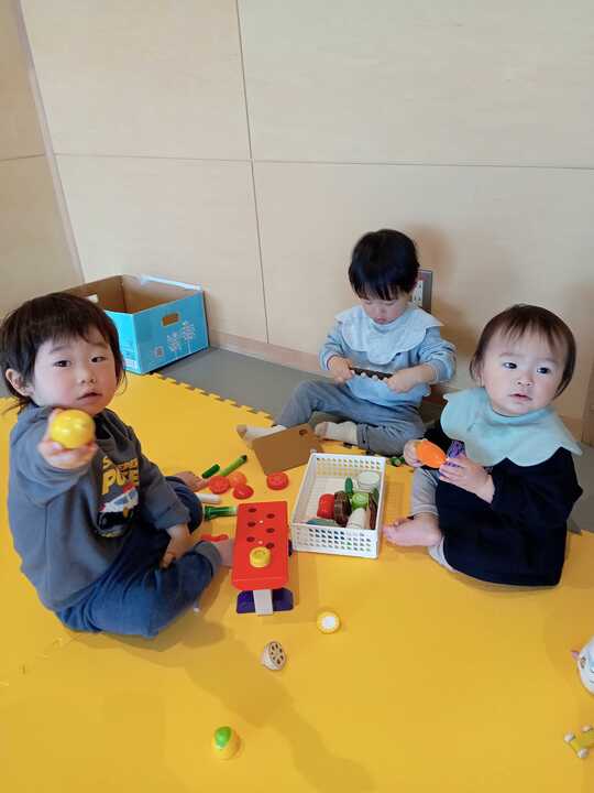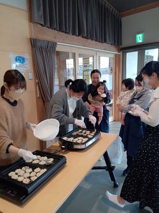 ホットプレートで焼いている間、ママのそばから離れて遊べる姿に、ママからは「少し前までは無理だったのに…成長を感じます」との言葉に、スタッフ一同嬉しく思いました♡